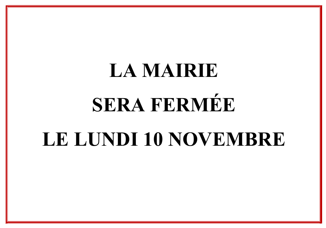 Vous êtes ici : Accueil > fermeture mairie le lundi 11 nov 2025